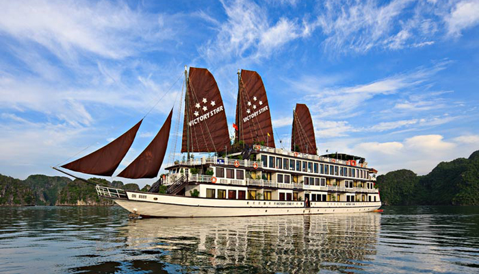 12:00 Welcome guests at Victory Café – Hon Gai International Tourism Port and check in for boarding 12:30 Check in on Victory Star, enjoy fruit juice and journey introduction 13:00 – 14:30 Begin the journeyLunch with local cuisines 15:00 Transfer to a boat to visit Vung Vieng fishing village - pearl exploration place. You can have chance to see a real daily life of original fishing village. 16:30 Traditional boat racing 17:00 Stop at Dong Tien Lake, Free to swim18.00: Relax and see sunset on the bay 18:30 Join cooking class 19:30 – 21:00 Dinner at the restaurant 21:00 Watch video of Ha Long Introduction. Relax on deck or join fishing fish or squid. Accommodation: Victory Star Cruise