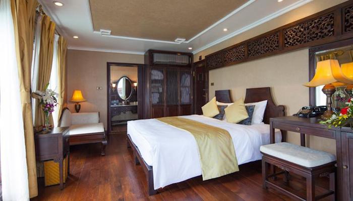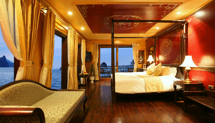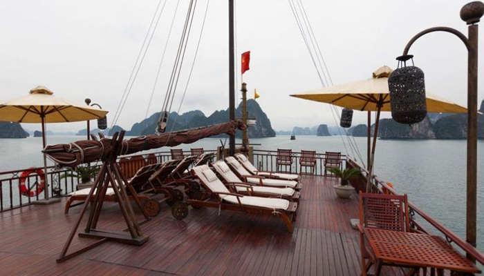 Launched on November 2009, our newest five star junk - the Halong Violet - fitted out in the 1930’s Indochine style. It featured a boutique dinning room, library & lounge, Spa & Gym and 6 individual theme cabins with marble bathroom, jacuzzi & balcony. The junk also cruise its own way away from the crowd to untouched areas of the bay.