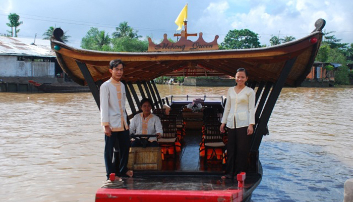 Our crew will do their utmost to provide you with all the services and comfort you need. The captain and his deck hand as well as the engineer are in charge of the technical details and the routing. An experienced chef and sevice staff will take you on a culinary journey through Vietnam. A local guide will explain the life and culture of the Mekong Delta to you and answer any questions you might have. Our staff also get regular safety trainings.