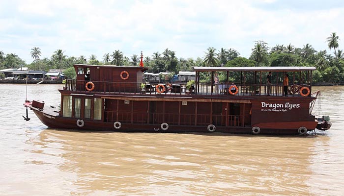 The two sister boats Dragon Eyes I and Dragon Eyes II were build in the traditional style of the Mekong Delta river boats of An Giang Province. Their elegant, slender and shallow hulls enable the Dragon Eyes to cruise also the secondary side canals which are too small for the larger cruisers to explore. There we find serene river front life that makes the Mekong Delta so unique.