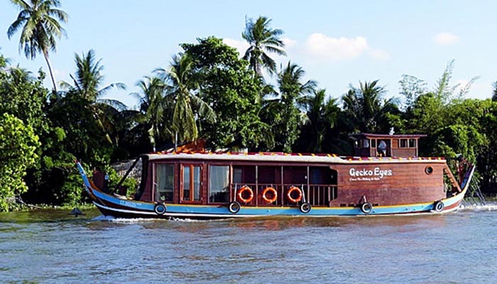 Did you always dream of exploring the Mekong in an individual way? The new Gecko Eyes houseboats will be perfect for you, the first of the houseboats is under construction and ready for first guests in April.The Gecko Eyes are private houseboats for two or four people, made for tours on a high level — for couples, small families or a group of friends.The houseboatBased on the traditional An-Giang fishing boats we are currently building our new luxurious houseboats for private and exclusive tours through the Mekong delta. The vessels, built by local craftsmen, are made of local woods decorated with elegant carvings for a special touch. To provide your safety and well-being, our staff on board (captain, sailor, chef, tour guide) is at your constant disposition.The guest area (40 sqm) has a luxurious cabin (double or twin occupancy) with a French balcony, air-con, a private bathroom, a panoramic lounge with French balconies and a sun deck at the bow. On request, the salon can be changed into an additional bedroom with two beds.The staff area, with a well equipped kitchen, is at the back of the ship. This area is completely separated from the guest area by a lockable door to ensure your privacy.Visit the famous floating markets with the Gecko Eyes, travel through small canals along orchards and floating villages up to the boarder to Cambodia or down to the port cities of Ha Tien or Rach Gia. Due to its shallow draft, the Gecko Eyes is able to glide through small tributaries and canals of the Mekong delta. The sailing area is from My Tho and Cai Be, near Saigon, through the lovely colonial town of Sa Dec, along Can Tho with its famous floating markets to Long Xuyen an Chau Doc near the Cambodian border. Basically the Gecko Eyes has the whole Mekong delta region at its disposal, as the ships are self-sufficient for several days. There are always bikes on board for spontaneous trips on the river islands along the small canals.
