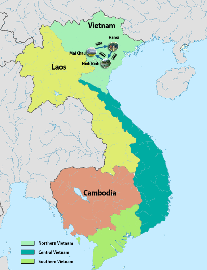 Following breakfast we embark on a lovely walk to Lac village and Van village. As we walk we will encounter the local villagers going about their daily business tilling the fields, logging or herding the buffalo. We enjoy lunch in Mai Chau before we drive back to Hanoi. Visit Muong village in Hoa Binh before tour finish at your hotel in Hanoi.